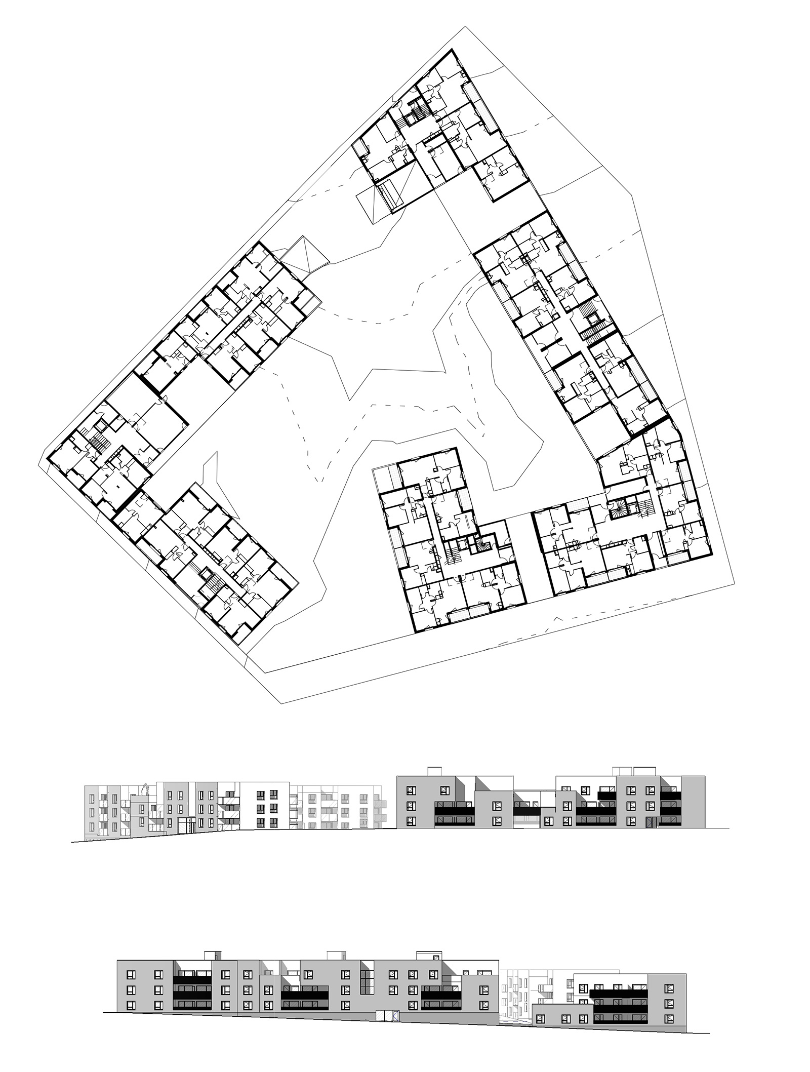 Point de départ de l’écoquartier de la Guignardière, qui accueillera à terme près de 600 nouveaux logements et porte les ambitions d’un cadre de vie préservé et convivial, tout en s’attachant à assurer une mixité sociale, fonctionnelle et générationnelle, les lots A1, A2 et A3-A4 vont développer un habitat pluriel : des maisons en bande qui bénéficient toutes d’un espace extérieur privatif (jardin et terrasses) sur le lot A1. En face, le lot A2 est composé d’édifices de taille moyenne (R+2) qui délimitera un coeur d’îlot planté accessible par tous. Enfin, deux bâtiments jumeaux encadrent un espace public sur le lot A3, future place centrale de l’écoquartier. Leurs rez-de-chaussée accueillent commerces et activités.
