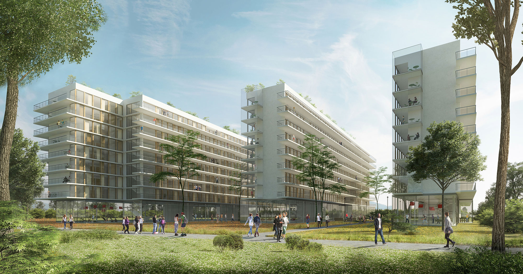 Composé de villas historiques et d’immeubles neufs qui marquent le paysage de Genève, le Campus de la Paix développé par IHEID accueillera le projet de la Cité Internationale du Grand Morillon. Nous proposons une typologie qui permet le dialogue avec le nouveau siège de Médecins sans frontières et la fondation Terra & Casa sans figer les écritures du site. Les logements étudiants, dont la forme se veut très ouverte sur le paysage et le campus, participent à l’accroissement de l’attractivité et le rayonnement de l’institut.