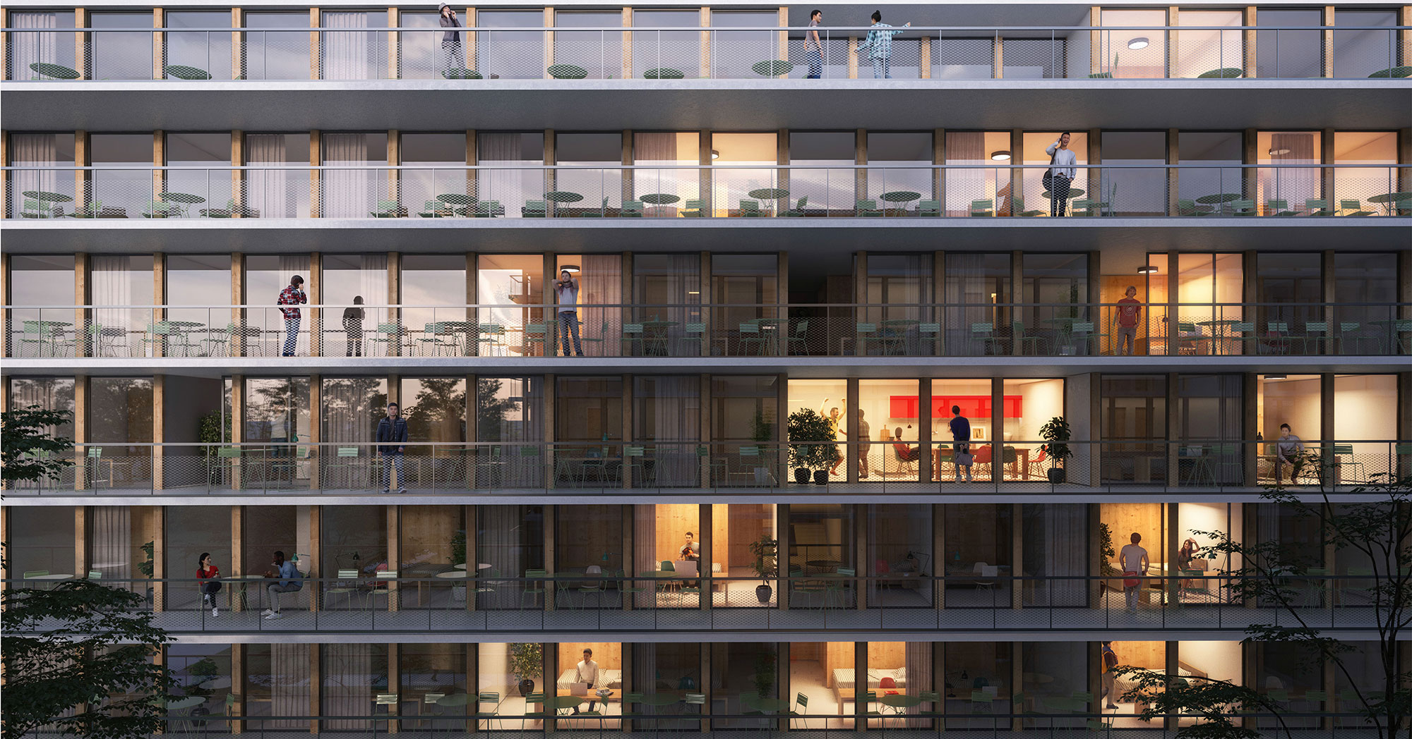 Situés dans le Petit-Saconnex, les logements étudiants sont bien desservis par les transports en commun, par le prolongement de la ligne du tramway 15 sur la route de Ferney qui donne accès au centre-ville de Genève en 20 minutes notamment. Notre proposition appuie de plus l’axe de la future Promenade de la Paix, qui permettra de rejoindre à pied en 15 minutes la Maison de la Paix via la Place des Nations.