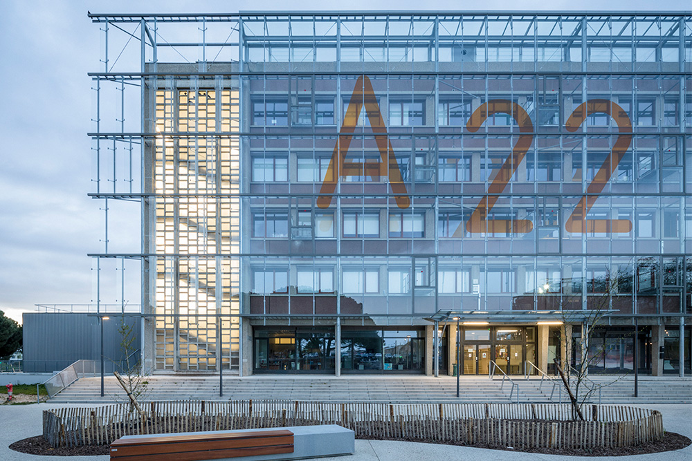 de René Coulon – 1953) : L’ajout d’une série de six avant façades en verre, les façades bioclimatiques, aux six bâtiments les plus hauts, permet de restituer la cohérence de l’ensemble architectural d’origine tout en proposant une réponse innovante aux nécessités d’isolation thermique.